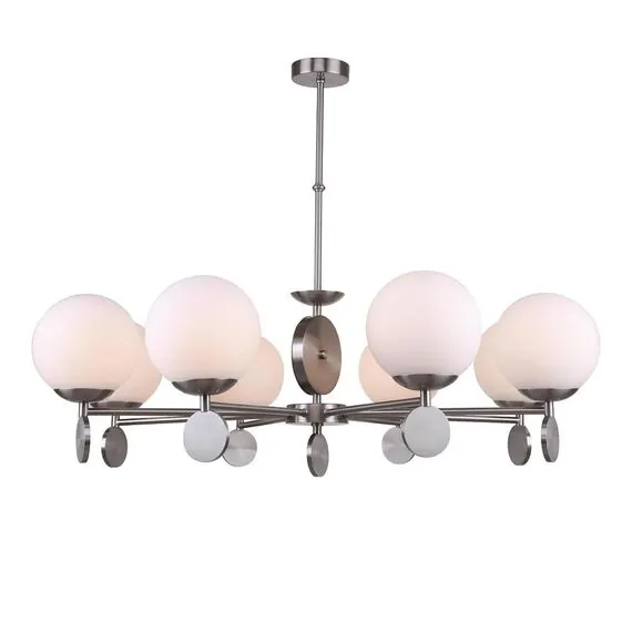 Артикул: 2141/11/08P; Бренд: Stilfort; Коллекция: Marsela; Стиль: Modern; Тип светильника по помещению: Для гостиной; Форма: Шар; Тип крепления: На потолок; Степень защиты: IP20; Общая мощность, W: 480; Площадь освещения, м2: 26; Напряжение питания, V: 220-240; Подходит для натяжных потолков: Да; Количество ламп: 8; Тип ламп: накаливания, Накаливания; Тип цоколя: E27; Мощность ламп, W: 60; Материал каркаса: металл, Металл; Материал плафона: стекло, Стекло; Цвет: белый; Цвет каркаса: никель, Никель; Цвет плафона: белый, Белый; Гарантия, мес: 12; высота: 700; Диаметр, мм: 920